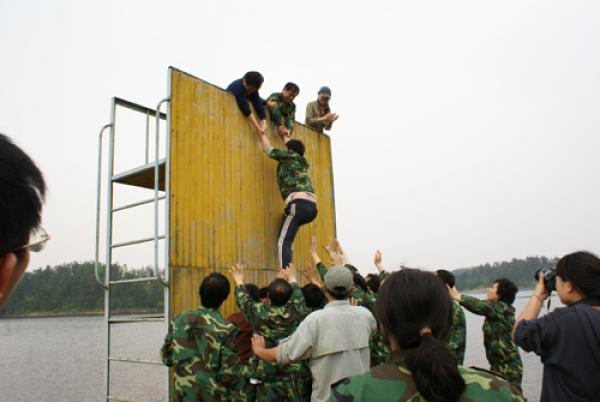 破冰主要是隊(duì)伍文化建設(shè),隊(duì)員們分成兩個(gè)團(tuán)隊(duì),并為自己的團(tuán)隊(duì)起隊(duì)名、設(shè)計(jì)隊(duì)徽,確定隊(duì)訓(xùn)與隊(duì)歌,隊(duì)員之間的凝聚力得以加強(qiáng);在背摔過程中,大家充分體驗(yàn)到人與人之間的信任與真誠(chéng),認(rèn)識(shí)到了自己對(duì)他人、對(duì)集體的責(zé)任;在電網(wǎng)、有軌電車和盲人方陣環(huán)節(jié)中,隊(duì)員們學(xué)會(huì)了有計(jì)劃性的分工合作,靈活應(yīng)對(duì),充分利用現(xiàn)有資源,從而加強(qiáng)了每一個(gè)人的團(tuán)隊(duì)協(xié)作精神;在最后的畢業(yè)墻項(xiàng)目中,全體隊(duì)員齊心協(xié)力,克服重重困難,最終全體隊(duì)員順利通過。