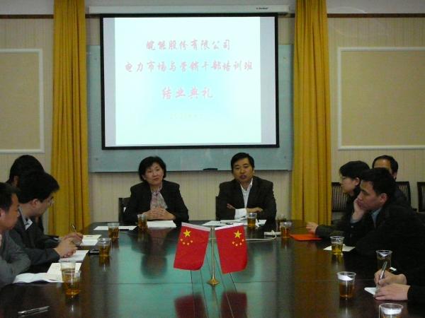 在結業(yè)典禮上舉辦了“皖能電力市場和營銷論壇”,各發(fā)電企業(yè)代表匯報和交流了學習心得,并結合各自的工作提出了很多新想法、好建議。大家一致反映此次培訓學習內(nèi)容豐富,活動安排合理,邀請講課的專家領導層次高、針對性強。通過學習,大家對于當前嚴峻的發(fā)電形勢和開展華東電力市場競價上網(wǎng)后面臨的挑戰(zhàn)認識的更加清醒;對建設皖能領先的電力營銷團隊、努力提高經(jīng)營人員素質(zhì)和水平的責任感與緊迫感進一步增強。股份公司施大福副總經(jīng)理在聽取了學員們的心得匯報后,作了總結性發(fā)言,他肯定了公司計劃經(jīng)營部和上海電力學院所做的大量工作,向?qū)W員們通報了公司一季度的經(jīng)營狀況,語重心長地和大家分析了公司目前面臨的困難和機遇,對大家提出了一定要重視學習、要將所學運用到實際工作中去的希望與要求。