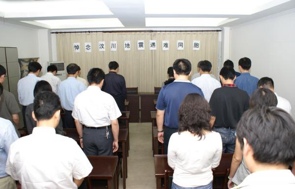 根據(jù)國務(wù)院決定,為表達對四川汶川大地震遇難同胞深切悼念,5月19日下午二點二十八分,皖能股份公司集中全體員工在公司六樓會議室向四川汶川大地震遇難同胞默哀3分鐘。