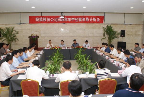 7月29日,皖能股份公司召開2008年年中經(jīng)營形勢分析會,會議總結了上半年工作,分析了公司面臨的形勢和任務,研究部署了下半年工作,會議提出要把握大局,迎接挑戰(zhàn),確保全年任務順利完成。會議由皖能股份公司副總經(jīng)理施大福同志主持。