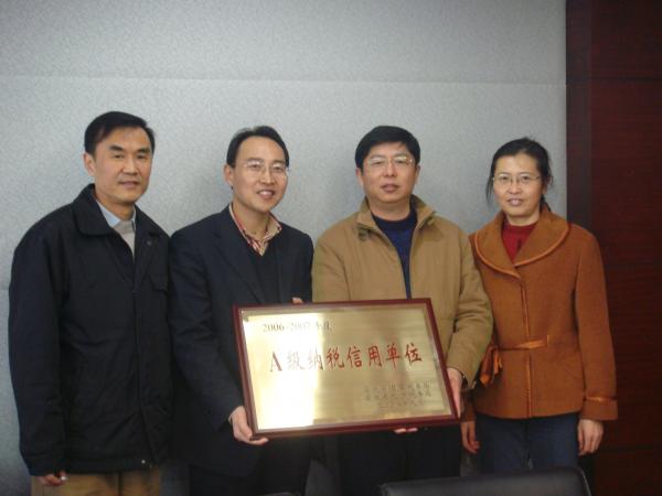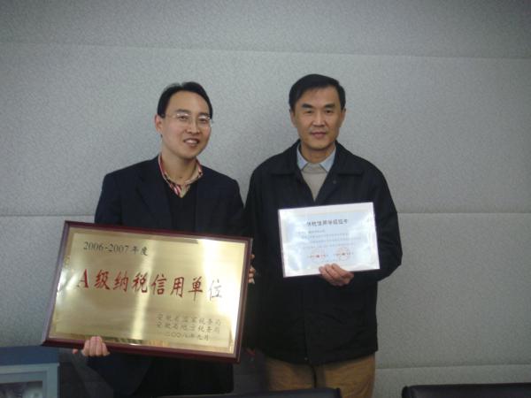 2009年2月25日上午,安徽省國(guó)稅局包河分局袁副局長(zhǎng)一行蒞臨我公司,向公司頒發(fā)“A級(jí)納稅信用單位”證書(shū)。