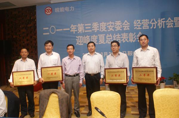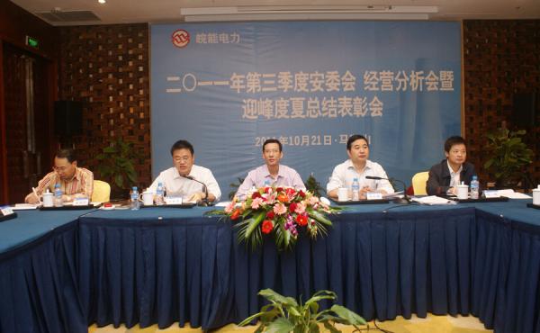 10月21日,皖能股份公司在馬鞍山市召開2011年第三季度安委會(huì)、經(jīng)營(yíng)分析會(huì)暨迎峰度夏總結(jié)表彰會(huì)。集團(tuán)公司黨委副書記、紀(jì)委書記張海平,股份公司領(lǐng)導(dǎo)、各部門主任,各發(fā)電企業(yè)、電力燃料公司、電力運(yùn)營(yíng)檢修公司、環(huán)保公司的有關(guān)負(fù)責(zé)同志等參加會(huì)議。