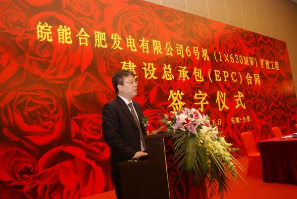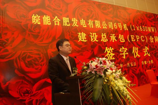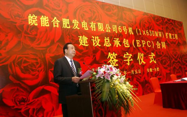 2012年1月5日上午,皖能合肥發(fā)電公司#6機(jī)組擴(kuò)建工程總承包合同簽約儀式在合肥隆重舉行,集團(tuán)公司董事長張飛飛出席并致辭。副省長黃海嵩,省政府副秘書長黃曉武,合肥市代市長張慶軍,省直有關(guān)部門負(fù)責(zé)人,中國電力工程顧問集團(tuán)公司總經(jīng)理吳春利,淮南礦業(yè)(集團(tuán))有限責(zé)任公司董事長王源,集團(tuán)公司副總經(jīng)理、神皖能源有限責(zé)任公司總經(jīng)理吳優(yōu)福,股份公司總經(jīng)理施大福等出席簽約儀式。集團(tuán)公司總經(jīng)理湯大舉主持簽約儀式。