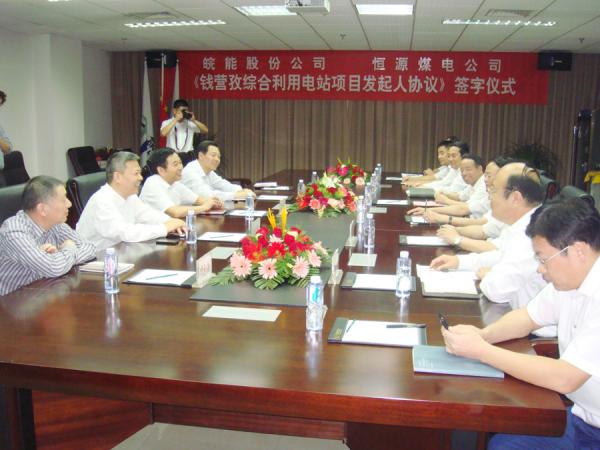 9月17日下午,皖能股份公司與皖北恒源煤電公司共同開發(fā)錢營孜綜合利用電站項(xiàng)目協(xié)議簽字儀式在皖北恒源煤電股份有限公司舉行。皖能股份公司總經(jīng)理施大福、副總經(jīng)理李波、項(xiàng)目管理部主任徐向陽,恒源煤電股份公司董事長龔乃勤、副總經(jīng)理王顯民、財務(wù)總監(jiān)郝宗典等出席了簽字儀式,儀式由恒源煤電公司總經(jīng)理汪永茂主持。