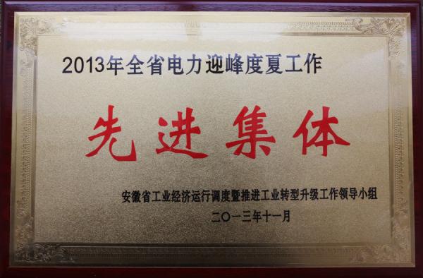 11月8日,在全省電力迎峰度冬工作會議上,皖能股份公司被省政府授予“2013年迎峰度夏工作先進集體”并予以通報表彰。同時省電燃公司程德貴、淮北國安公司吉全會和皖能銅陵公司劉海軍等三位同志被授予“2013年全省迎峰度夏工作先進個人”稱號。