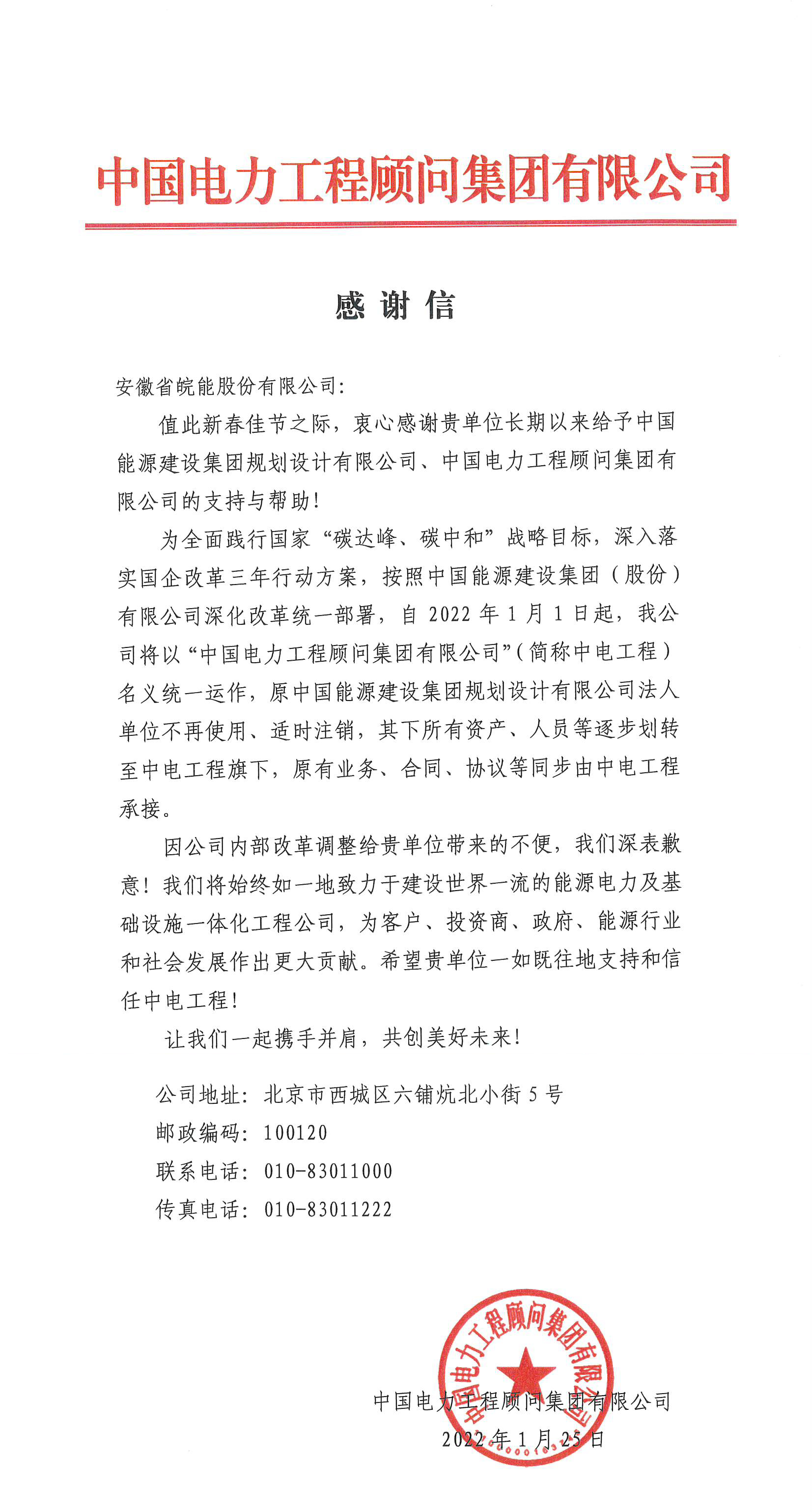 感謝信(中國核能電力股份有限公司)