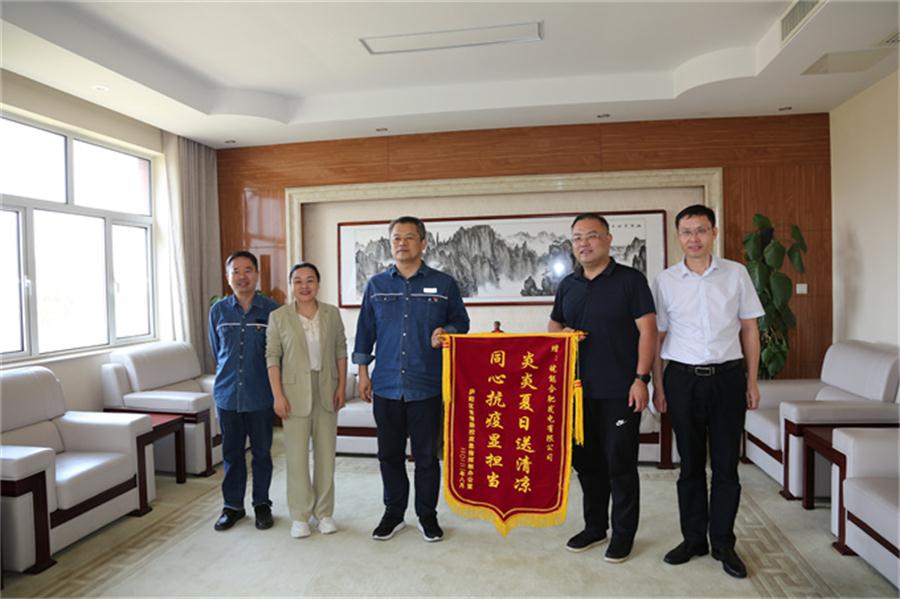8月3日下午,合肥市廬陽(yáng)區(qū)經(jīng)信局、衛(wèi)健委、杏花村街道負(fù)責(zé)同志專程前往皖能合肥公司,代表廬陽(yáng)區(qū)委、區(qū)政府將一面寫有“炎炎夏日送清涼 同心抗疫顯擔(dān)當(dāng)”的錦旗和感謝信送到皖能合肥公司黨委書記、董事長(zhǎng)李建河手中,對(duì)該公司為廬陽(yáng)區(qū)疫情防控給予的支持表示感謝。