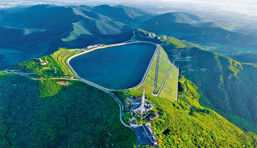 ??抽水蓄能是目前技術(shù)最成熟、經(jīng)濟性最優(yōu)、最具大規(guī)模開發(fā)條件的儲能方式,也是清潔低碳的靈活調(diào)節(jié)電源。我國抽水蓄能電站裝機容量位居世界首位。截至2021年底,國家電網(wǎng)經(jīng)營區(qū)抽水蓄能電站在運、在建規(guī)模分別達到2631萬千瓦、4643萬千瓦。圖為江蘇宜興抽水蓄能電站上水庫。 國家電網(wǎng)有限公司黨組宣傳部供圖